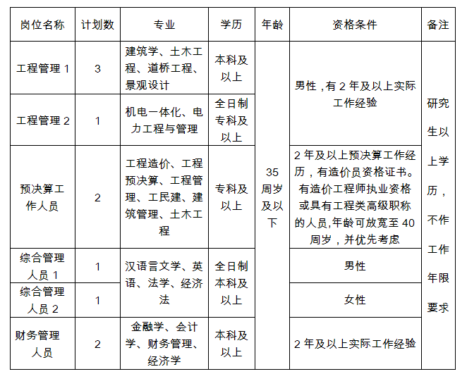 根據(jù)工作需要,決定面向社會公開招聘若干國有企業(yè)工作人員,現(xiàn)將有關(guān)事項公告如下: